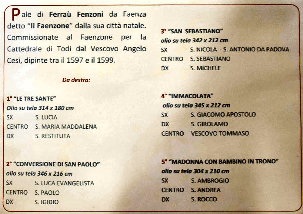 Le pale furono commisionate dal vescovo Angelo Cesi e furono dipinte tra il 1597 ed il 1599.