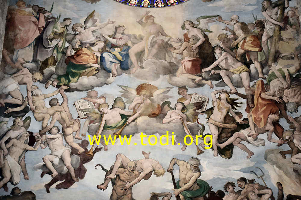 Volontariamente chiudiamo la descrizione della Cattedrale di Todi con il bellissimo "Giudizio Universale" dipinto da Ferraú Fenzoni da Faenza nel 1596 sulla parete di ingresso,.